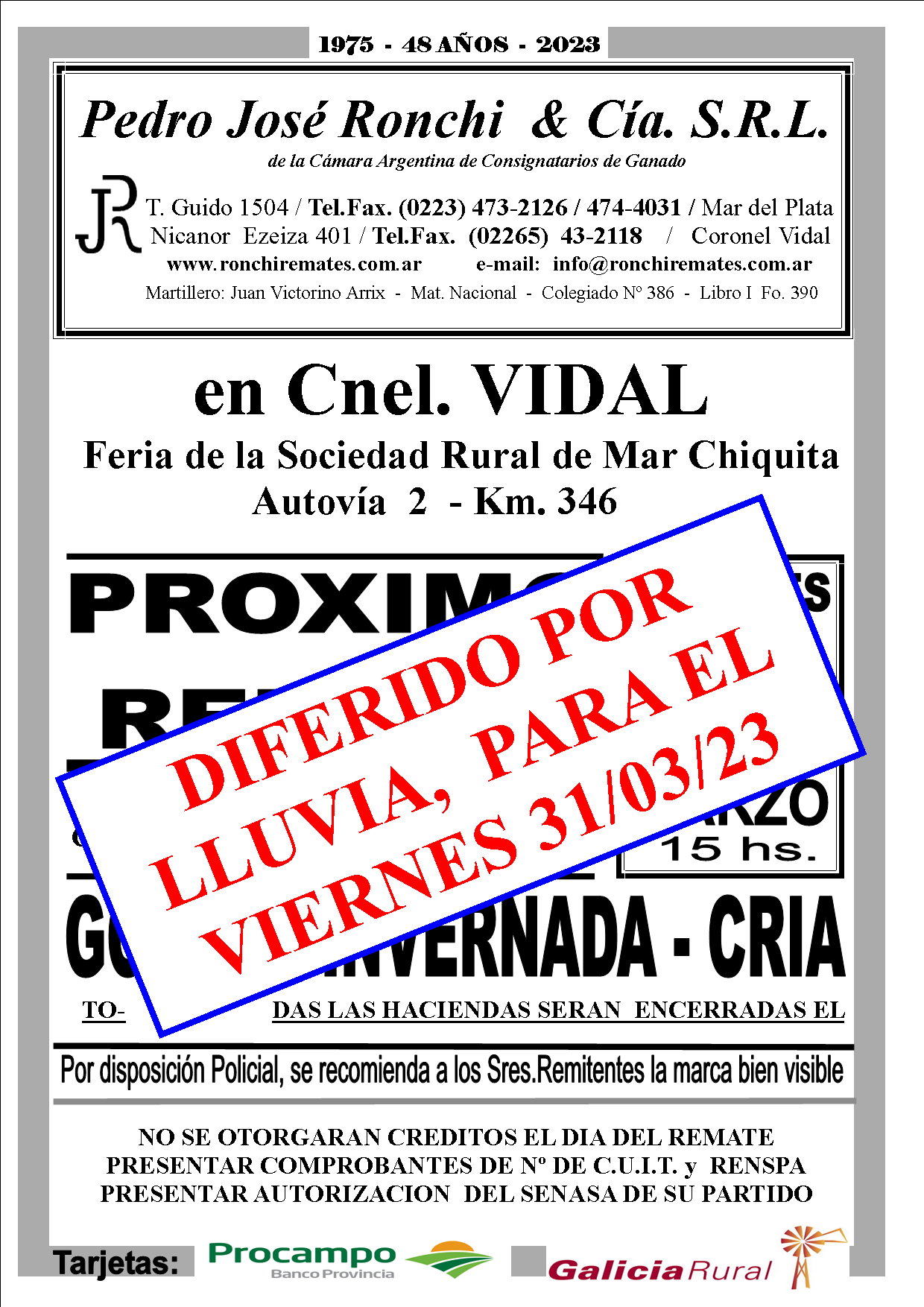 La Sociedad Rural de Mar Chiquita agradece a las casas consignatarias y a todos los productores su participación en la jornada del viernes 3