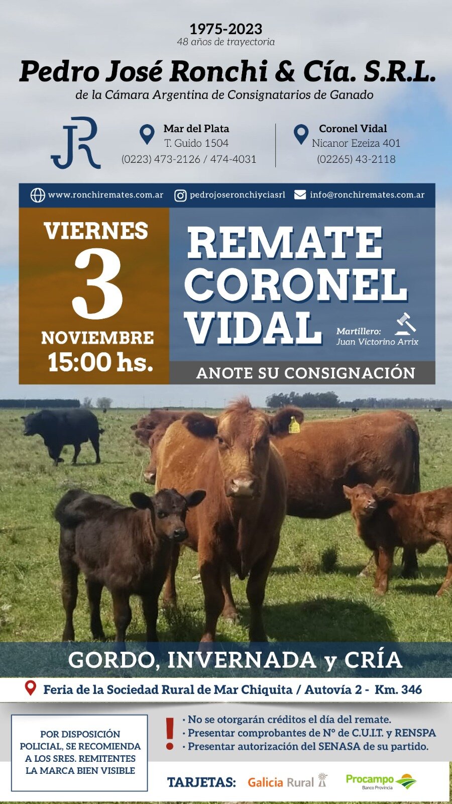 Viernes 3 de noviembre a las 15hs en el predio ferial de Coronel Vidal. Se invita a socios, productores y público en