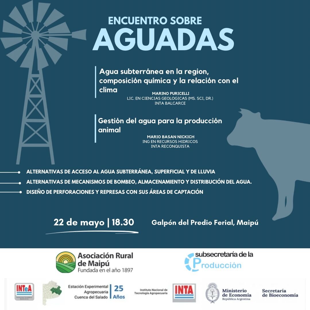 Se invita a participar del Encuentro sobre Aguadas organizado por el INTA junto a la Secretaria de Producción de la Municipalidad de Maipú y la Sociedad Rural de Maipú el día 22 de mayo a las 18:30 en el galpon del predio ferial.
