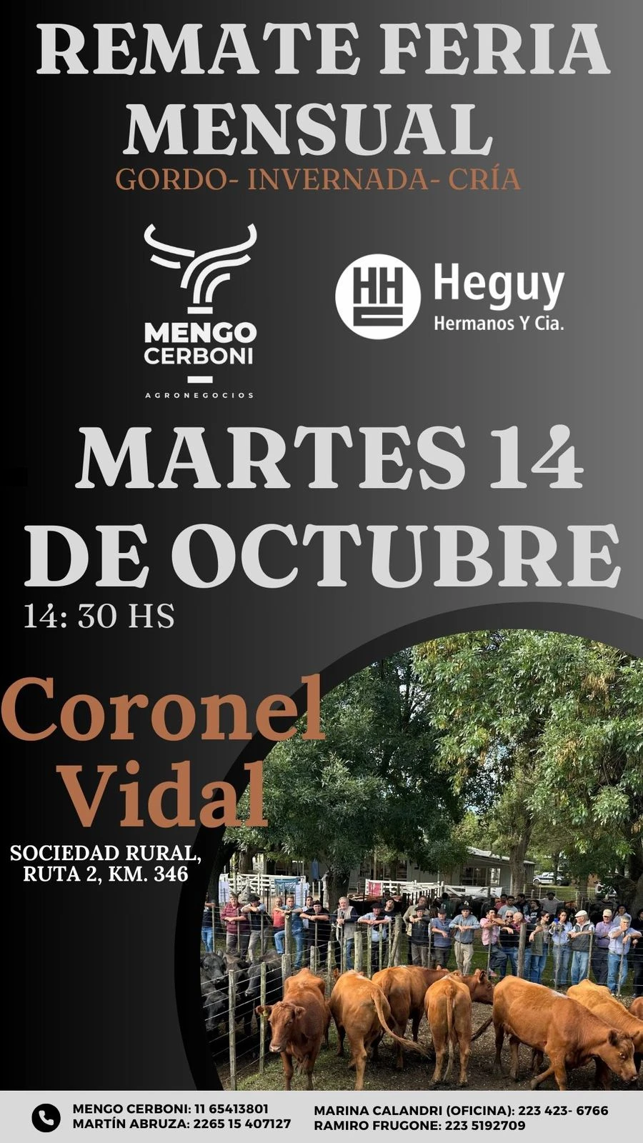 Próximo remate de feria mensual, martes 14 de octubre en el predio de la Sociedad Rural de Mar Chiquita.