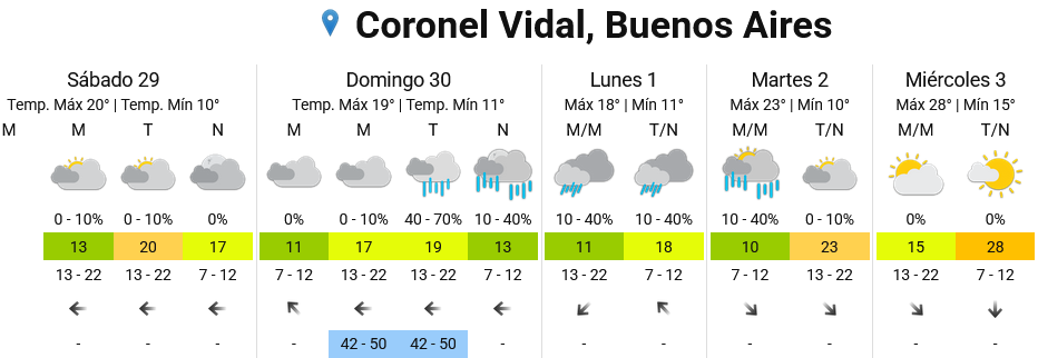 El sábado las lluvias aumentarán la intensidad y se extenderán por Córdoba, Santa Fe, La Pampa, Buenos Aires (sobre todo en la porción centro y norte) y región chaqueña donde los montos de lluvia pueden superar los 50 milímetros y alcanzar valores de 100 mm o incluso más, especialmente en el centro. Se registrará un moderado descenso de temperatura y viento con componente este. Seguirá la inestabilidad el domingo, con mejoramientos temporarios pero con un nuevo aumento en la intensidad de los fenómenos sobre Buenos Aires y el litoral sobre todo a partir del mediodía y las lluvias también abordarán el norte de la Patagonia.