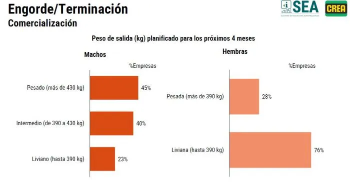 En paralelo, los empresarios pecuarios CREA muestran otra tendencia clara: un giro hacia animales más pesados en las etapas de recría y terminación. Aumentar el peso medio de faena aparece como una estrategia para compensar la relativa escasez de oferta y responder tanto al mercado interno como al externo. La recuperación de los precios internacionales, impulsada por factores geopolíticos y estructurales, junto con la depreciación reciente del tipo de cambio, mejora la competitividad de los frigoríficos exportadores, que justamente demandan hacienda de mayor kilaje.