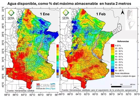 Para la agricultura en secano de las regiones Pampeana y Chaqueña en Argentina, más de 35 millones de hectáreas con cultivos anuales para grano o fibra, el clima de enero es decisivo. En la región, la demanda de agua para transpirar de una cobertura total verde se aproxima a los 180 mm, mientras que el aporte por lluvias va desde unos 150 a 100 mm, en promedio, excepto el extremo sudoeste donde solo alcanza 50 mm.