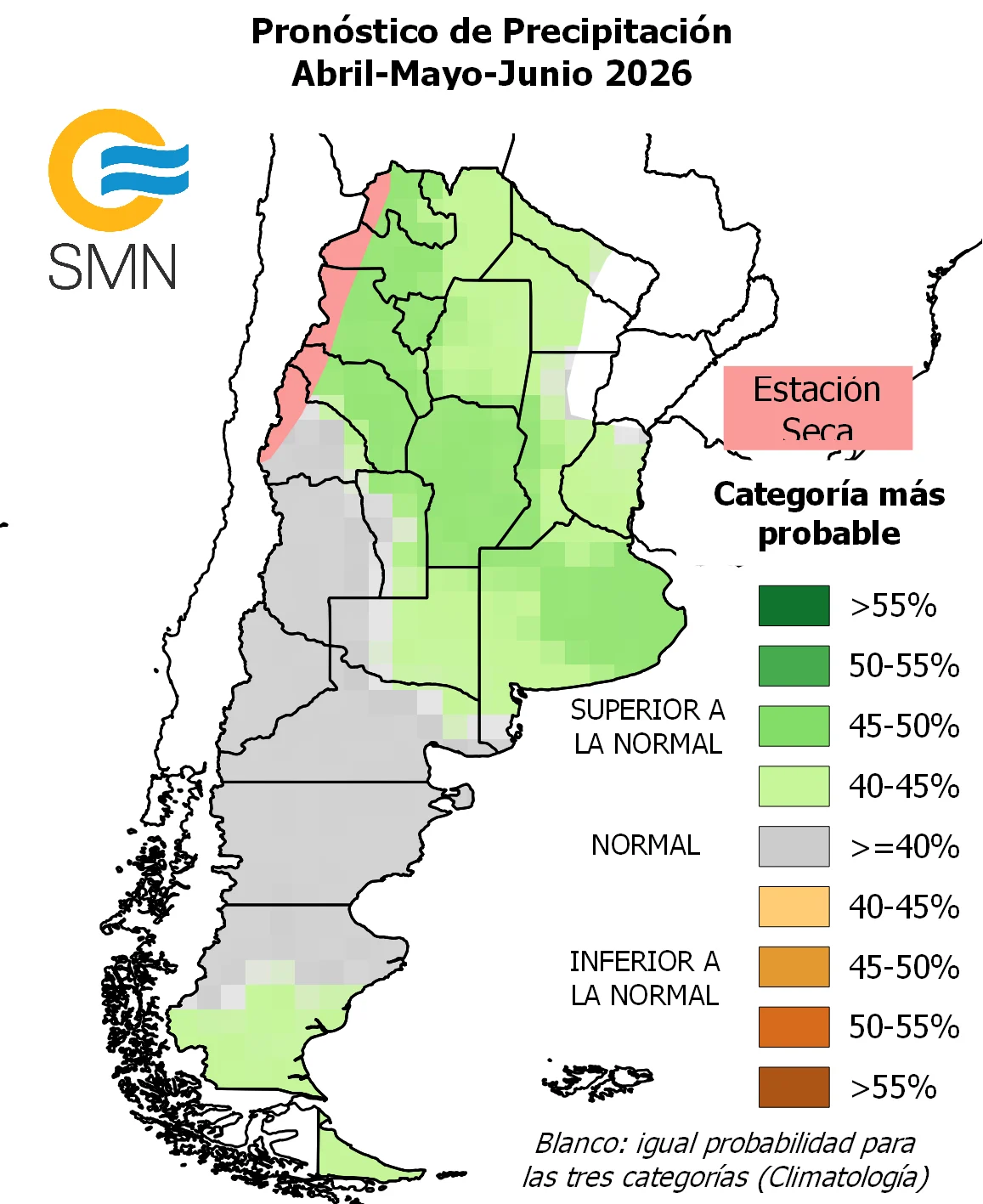 A nivel trimestral, las perspectivas refuerzan la tendencia húmeda. El consenso del SMN y otros organismos indica altas probabilidades de lluvias superiores a lo normal entre abril y junio en gran parte de las zonas productivas, incluyendo Córdoba, Santa Fe y Buenos Aires. Este patrón climático configura un escenario donde la falta de agua no sería una limitante, aunque crecen los riesgos por excesos.